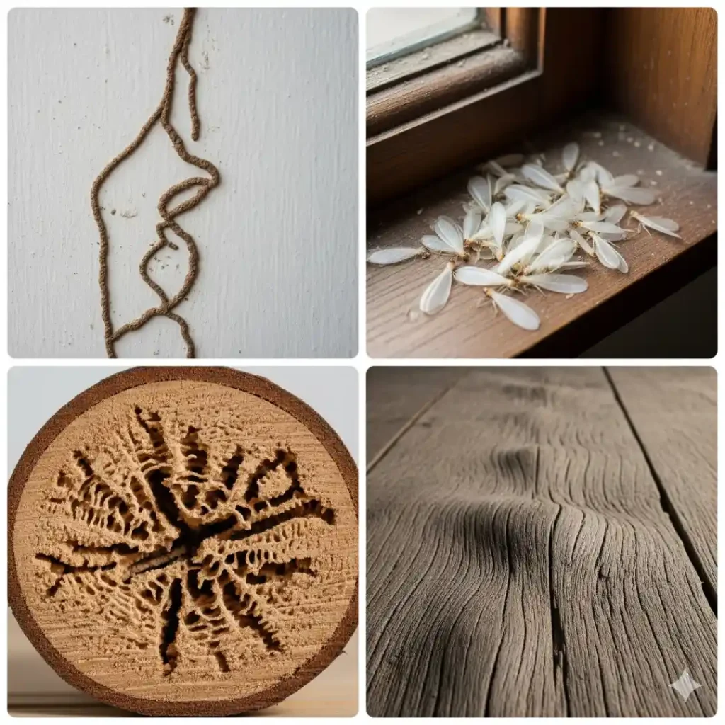 Look for mud tubes on walls or foundations, discarded termite wings near windows or doors, hollow-sounding wood when tapped, and small piles of sawdust-like droppings (frass). If you see any of these signs, contact us for an immediate inspection.